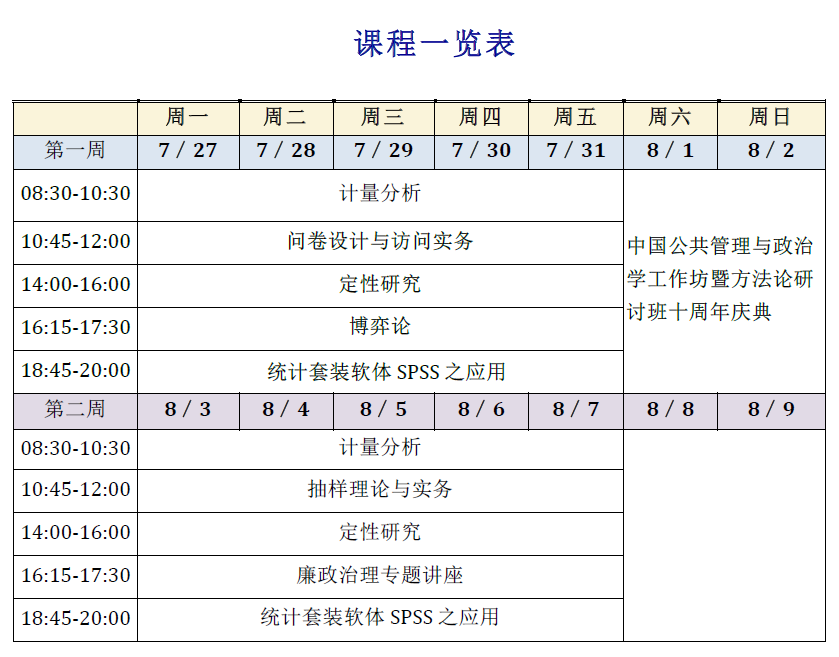 联合美国杜克大学及美国「校际社会科学研究联盟」(ICPSR)暑期培训部,将于2015 年7 月27 日至8 月7 日在华南理工大学举办第10 届「中国公共管理与政治学研究方法暑期研讨班」,欢迎旧雨新知共襄盛举。