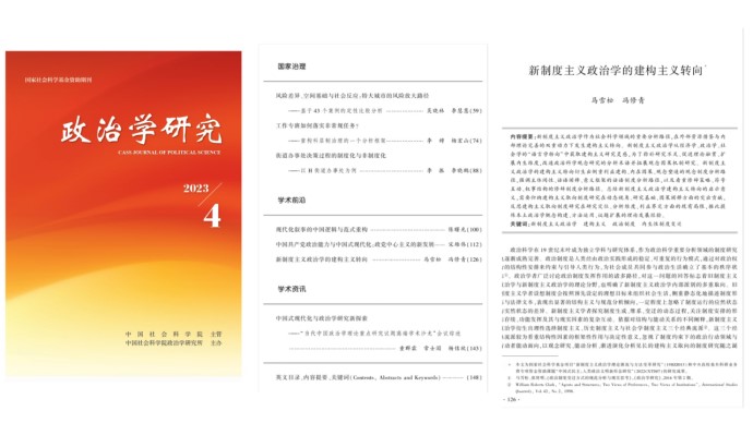马雪松教授团队在《政治学研究》2023年第4期发表题为《新制度主义政治学的建构主义转向》的文章。文章揭示了新制度主义政治学建构主义转向的社会科学背景、内在原因与推动力量,考察建构主义取向的新制度主义政治学的主要研究路径,阐述了新制度主义政治学建构主义转向的贡献、局限及其对本土政治学的启示。文章以制度研究的能动性维度这一创新视角为切入点,系统阐释了新制度主义政治学建构主义转向的学理脉络与内在逻辑。