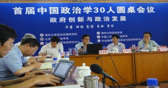 8月17至18日,由清华大学政治发展研究所、清华大学政治学系、北京大学政治学系、中国人民大学政治学系、中央党校世界政党研究中心和中央编译局比较政治与经济研究中心六家单位共同发起的“首届中国政治学30人圆桌会议”在北京会议中心举行,来自国内各地的政治学者30人以及青年政治学者代表15人参加了本次会议。首届圆桌会议的主题是“政府创新与政治发展”。