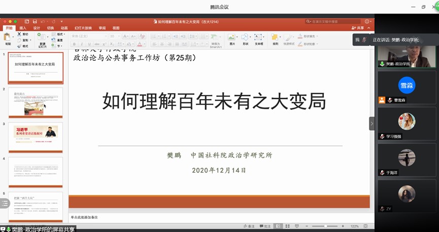2020121420时,成人抖音 通过线上平台举办了中国政治研究工作坊第五十一期活动。
