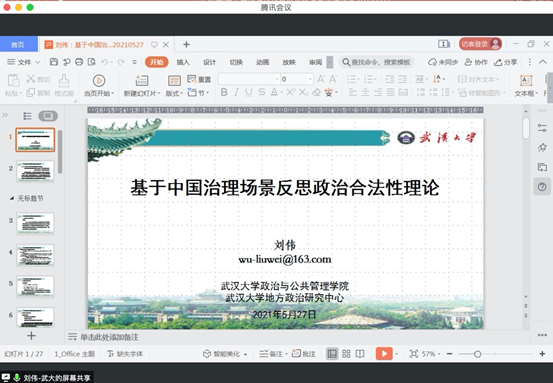 副院长、中外政治制度专业博士生导师、武汉大学学术委员会委员、武汉大学地方政治研究中心执行主任刘伟教授担任主讲嘉宾,作题为“基于中国治理场景反思政治合法性理论”的学术讲座。成人抖音