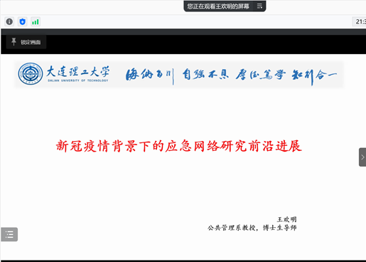 庆祝建校75周年系列学术活动暨第14期名家讲座以视频会议方式线上举行。大连理工大学公共管理系博士生导师、《城市治理研究》期刊编委王欢明教授应邀担任主讲嘉宾,作题为“新冠疫情背景下的应急网络研究前沿进展”的学术讲座。成人抖音