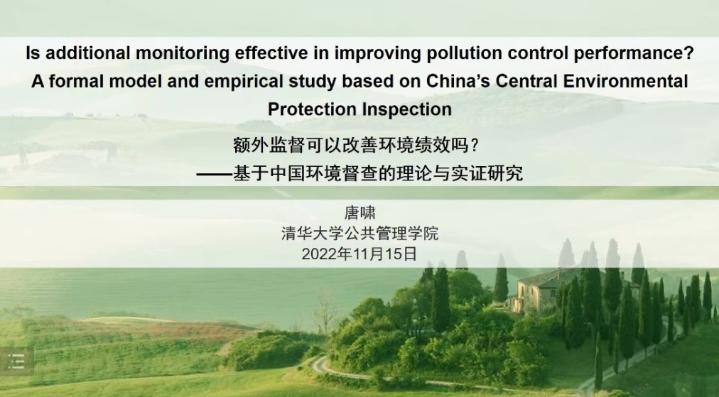 副教授、清华大学国情研究院副研究员、清华大学仲英青年学者、首届夏书章公共管理优秀博士论文奖获得者唐啸老师受邀担任主讲嘉宾,作题为“额外监督可以改善环境绩效吗?——基于中国环境督查的理论与实证研究”的学术讲演。本次讲座由成人抖音