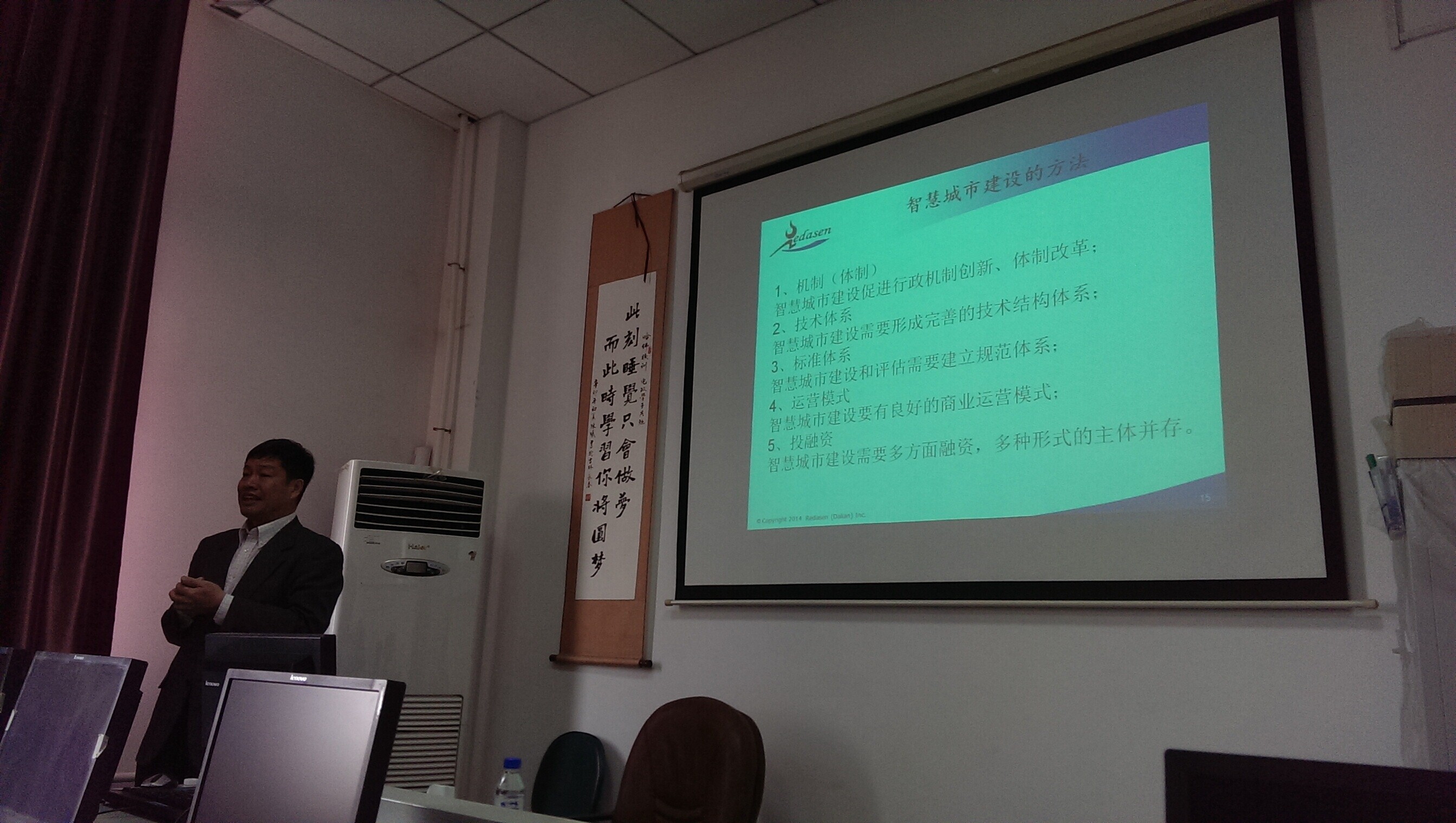 李德衡先生首先就智慧城市的概念和发展历程做了简要的介绍,然后结合自己在实际工作中的经验,从理论和实践两个角度详细地讲述了智慧城市在促进国民经济发展和改善民生等方面的作用,并在微观层面上就智慧城市的商业建设和运营模式做了深入细致的讲解。最后,李先生针对学生们关于智慧城市中电子社区的建设前沿、产业发展中的政府角色等问题做了一一详细的解答。