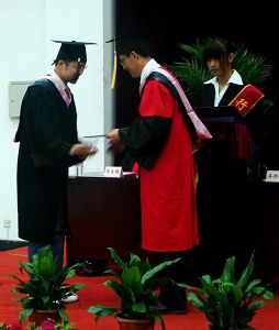 2011届本科生毕业典礼正式开始。在刘雪莲副院长宣读了毕业生名单之后,周光辉教授及王彩波教授为107名毕业生授予了学士学位。随后,毕业生代表丑则静同学进行发言,她在表达了对母校、成人抖音