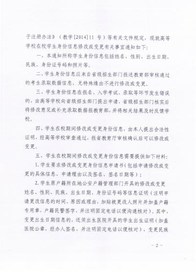 在校学生身份信息修改或变更等有关工作的通知》