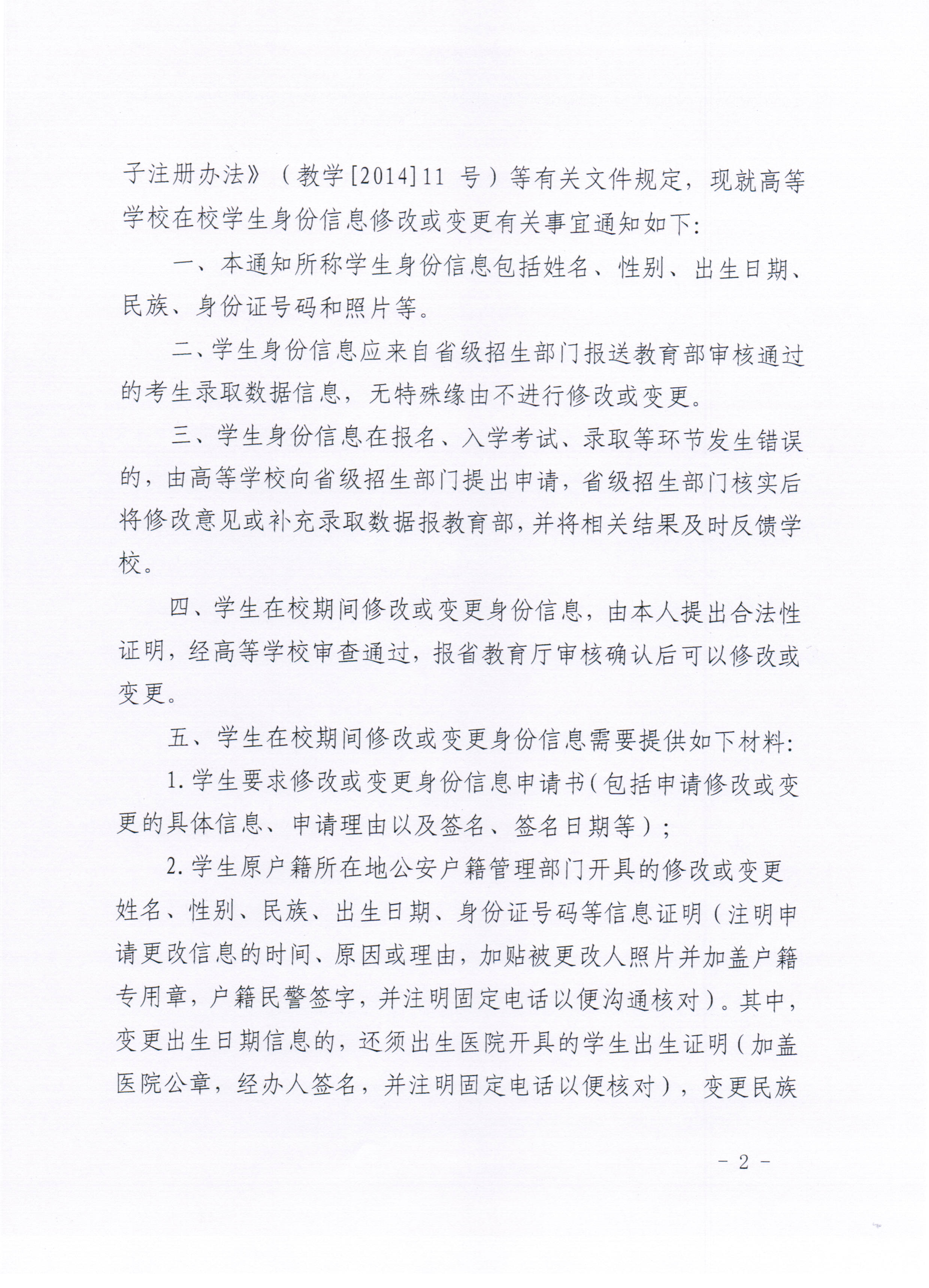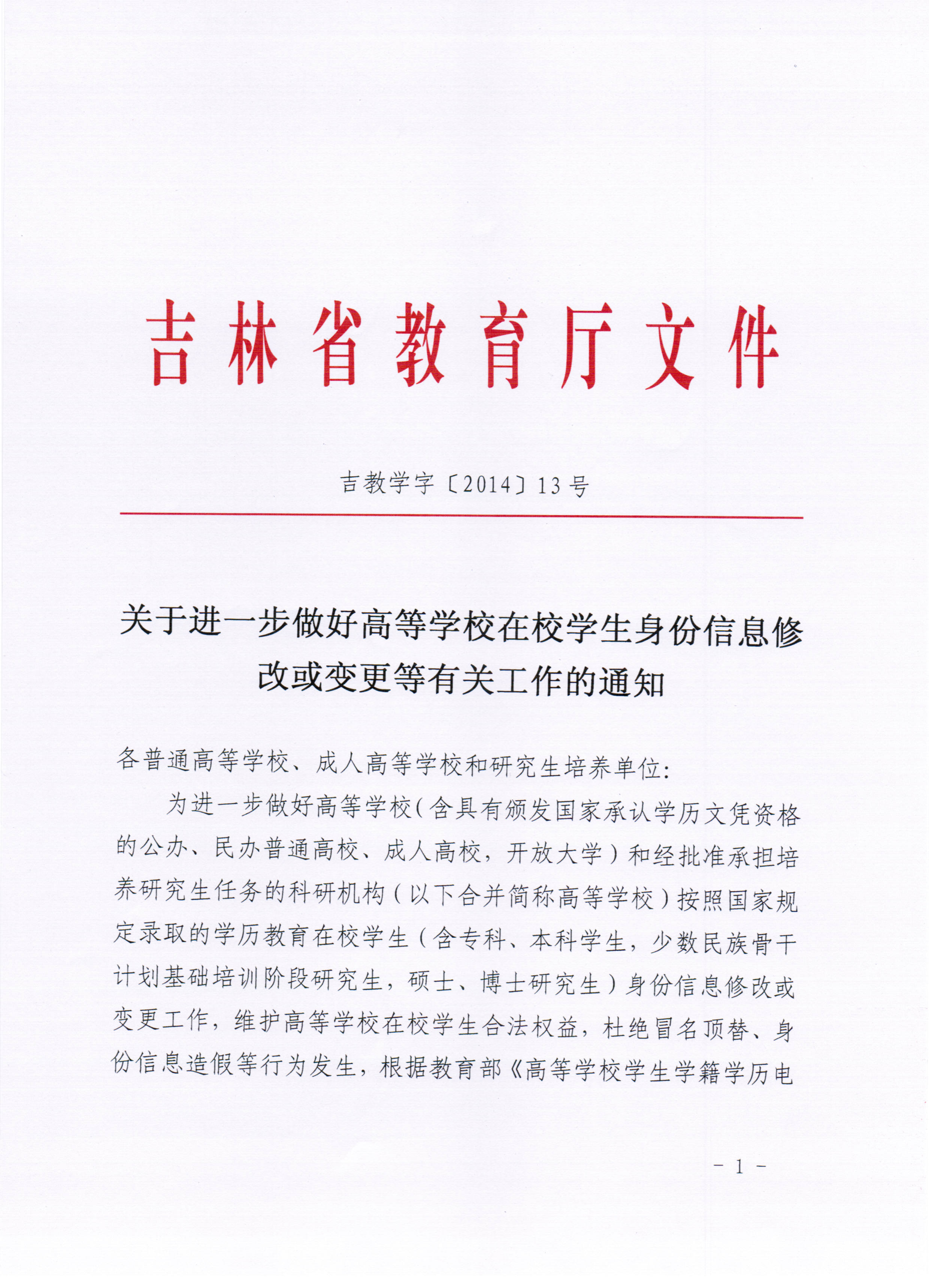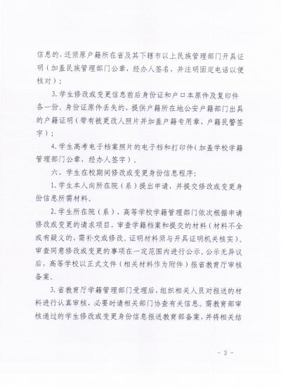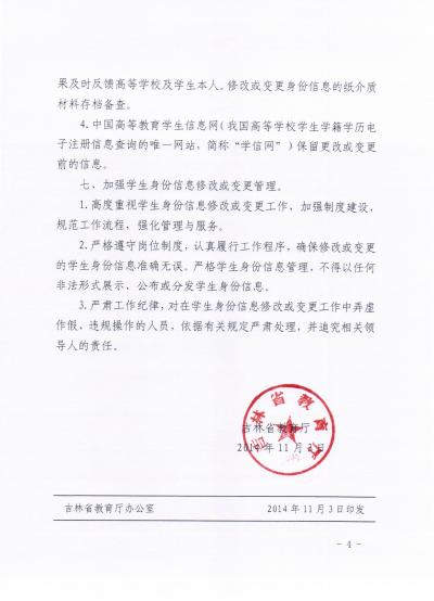 在校学生身份信息修改或变更等有关工作的通知》(吉教学字〔2014〕13号),现予以转发。