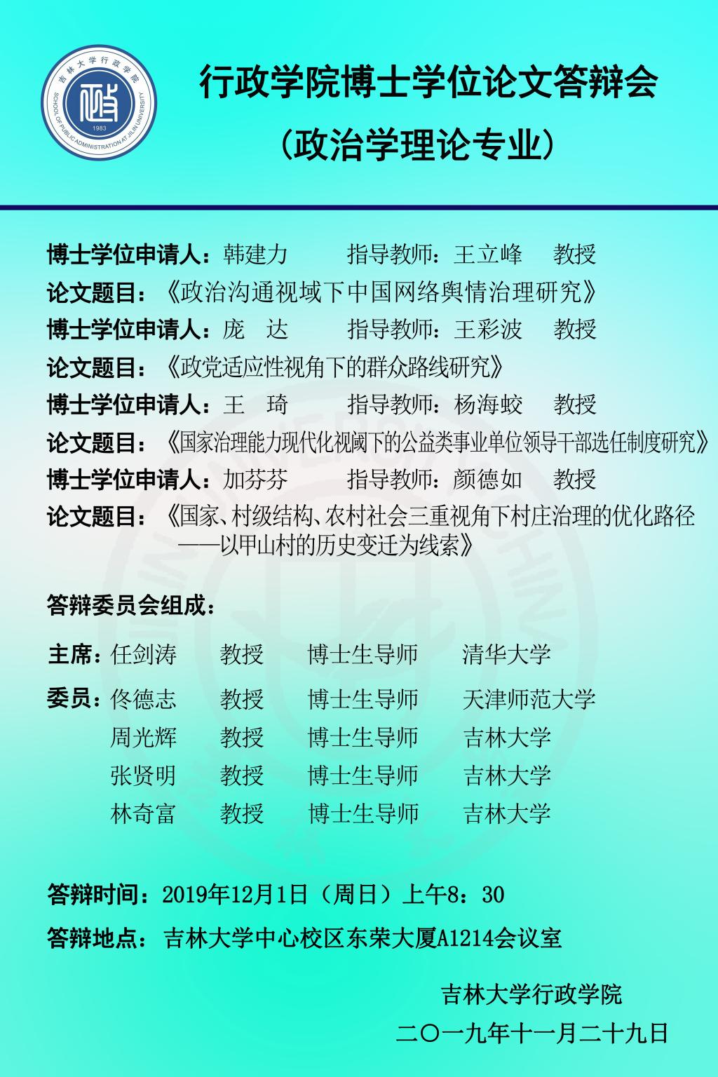 第二组:政治学理论专业(2019年12月1日下午组14:00开始,成人抖音 中心校区东荣大厦A1214会议室)