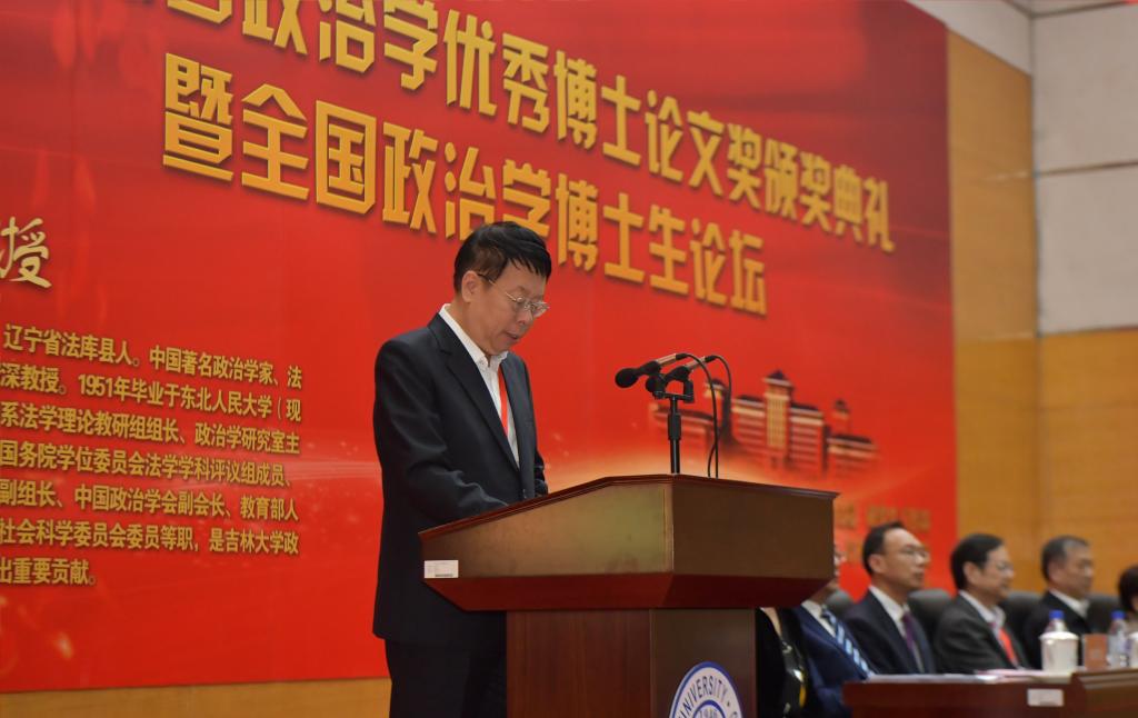 全体师生向参加颁奖典礼的各位嘉宾表示热烈的欢迎。他在致辞中介绍了王惠岩政治学优秀博士论文奖设立初衷,并详细说明了首届王惠岩政治学优秀博士论文奖的评审过程,并对中国人寿保险股份有限公司吉林省分公司、中国政治学学界前辈和各位同仁、成人抖音