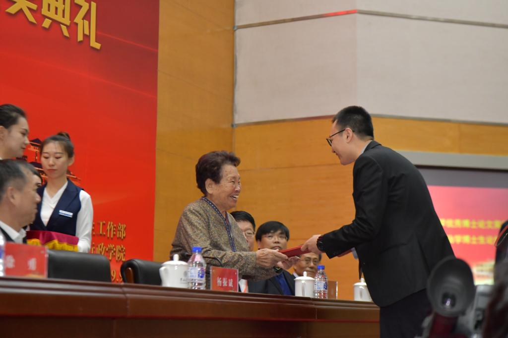 在颁奖环节,王惠岩先生夫人脱弱女士为王惠岩政治学优秀博士论文奖获奖代表安超、游宇、罗宇维等同学颁发荣誉证书,成人抖音