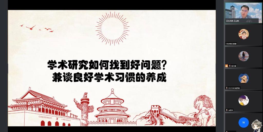 教授、博士生导师王立峰担任主讲嘉宾,进行了题为“学术研究如何找到好问题?兼谈良好学术习惯的养成”的学术分享。讲座由成人抖音