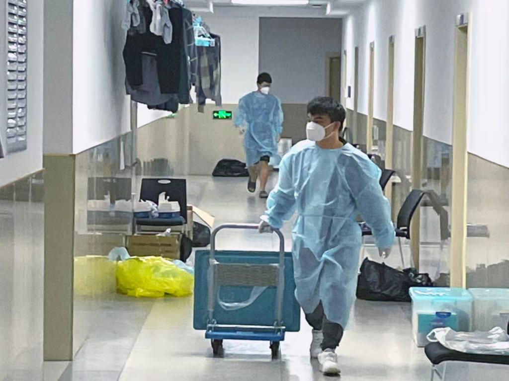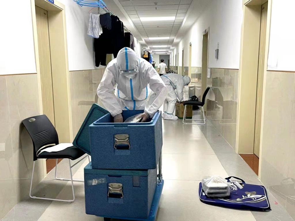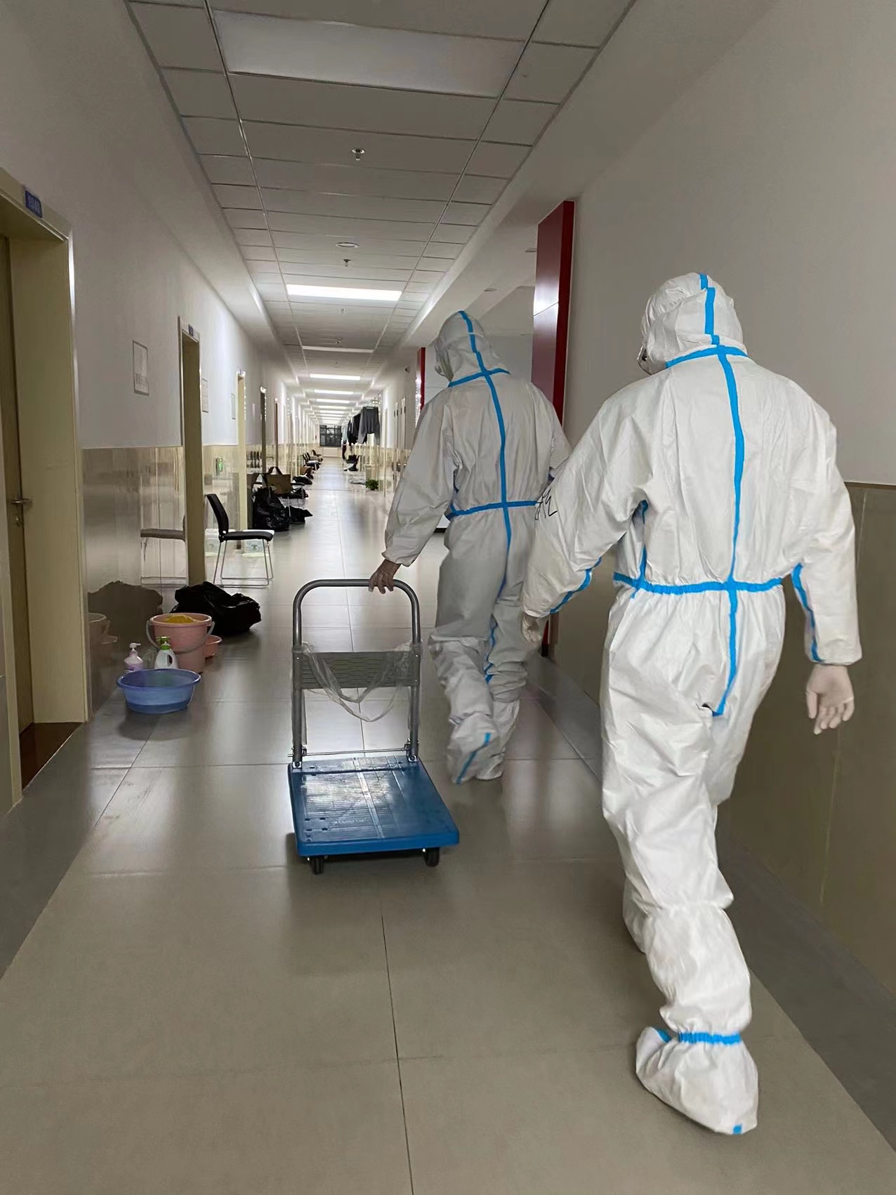 有一天上午,我在那个小角落里被拖了出来,我知道我要去工作了。我刚准备上电梯,就看见了两个穿着白色衣服、带着口罩的人,把一个重重的箱子放在了我的身上,我闻到了箱子里传来的饭菜味,我还没来得及去思考发生了什么,就被拖着给同学们去送饭了,一遭下来我觉得自己快要散架了,毕竟已经有两个月时间没有工作了。送完餐后我就被带回宿舍了,刚刚穿着白色衣服的两个人脱下了他们的衣服,我看到他们全身是汗,就算是铁打的我这么一遭也会觉得吃不消,想来他们会更辛苦。后来我了解到,今年三月以来长春市新冠疫情突发,成人抖音