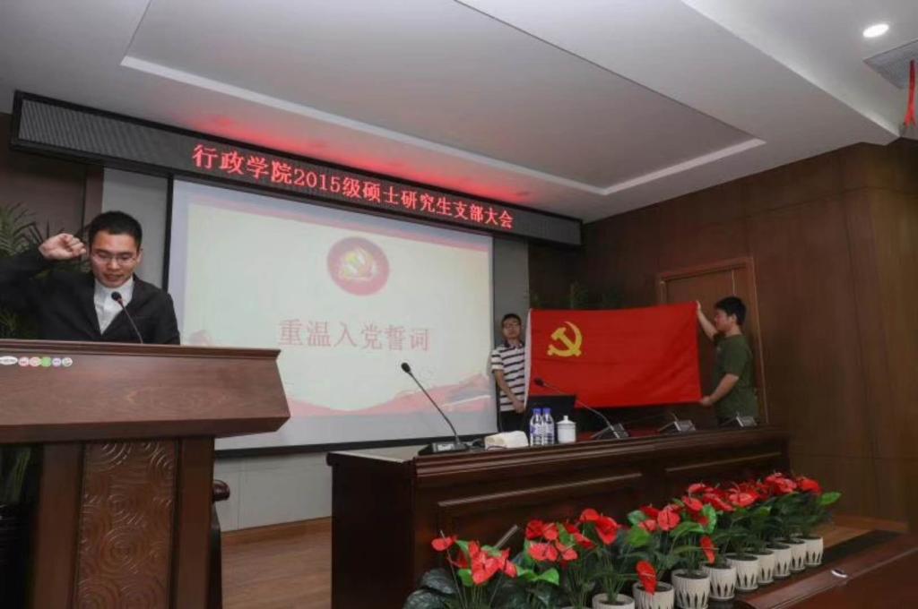 2015级硕士研究生党支部召开毕业支部大会。本次支部大会包括预备党员转正、重温入党誓词、毕业党课三个环节。参会人员为成人抖音