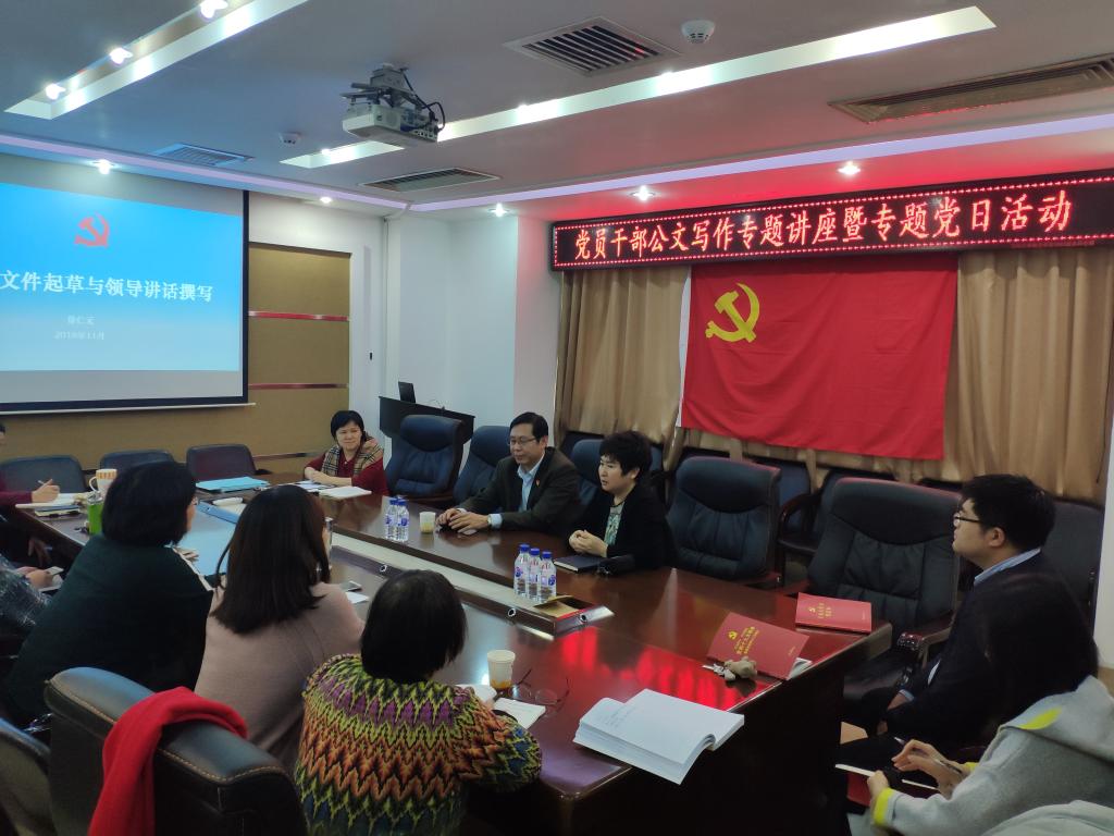 党委关于进一步提升干部队伍素质,打造专业化干部队伍的要求,推进支部党建工作扎实开展,1月11日下午,机关教工党支部举办"党员干部公文写作"专题讲座暨主题党日活动。此次公文写作专题讲座特邀成人抖音