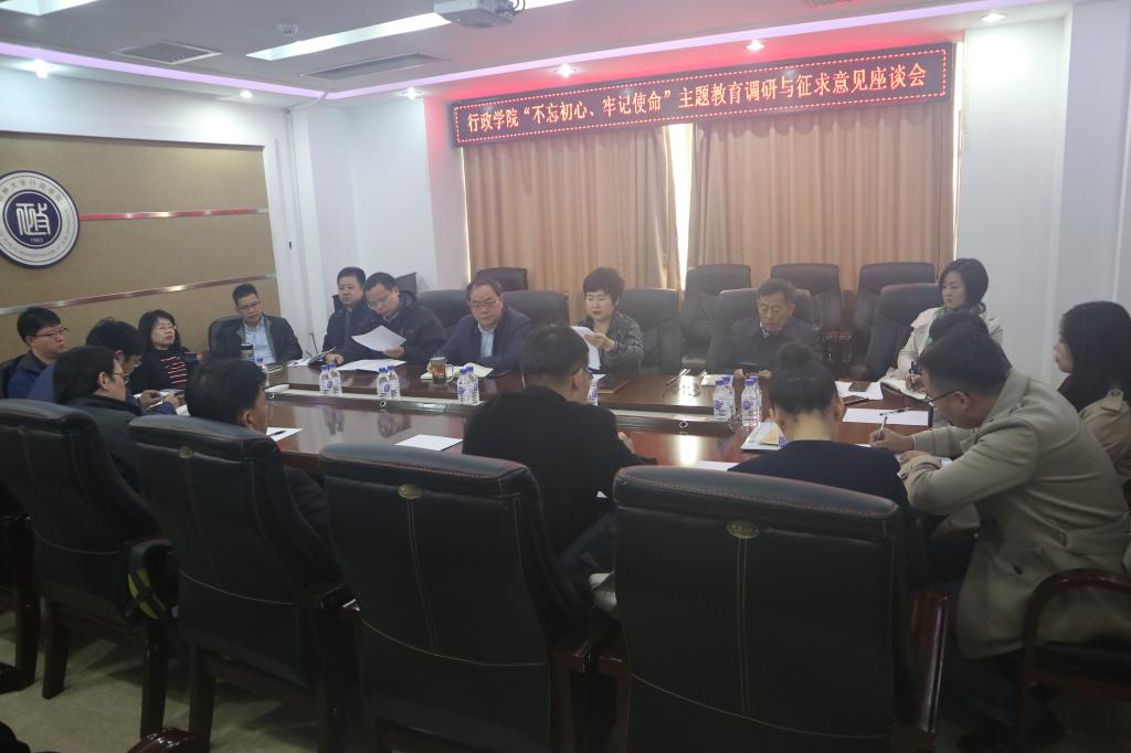 处级领导干部与政治学系教师、国际政治系教师、行政管理系教师和电子政务系教师分别召开“不忘初心、牢记使命”主题教育调研与征求意见座谈会,党委书记魏鹤影主持会议。