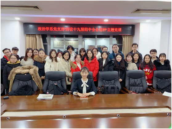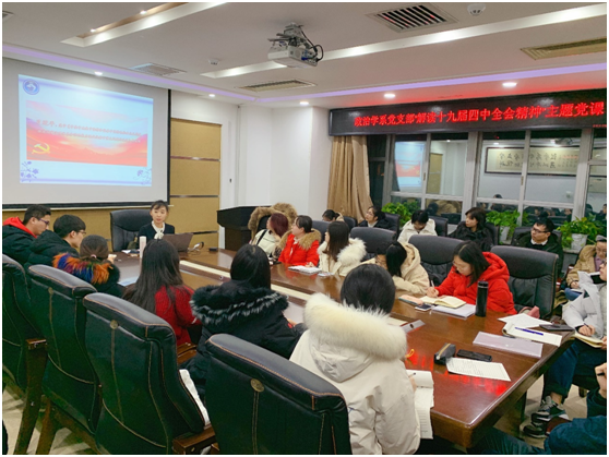 为深入贯彻学习党的十九届四中全会精神,12月17日晚,政治学系党支部于东荣大厦1214会议室举行了“解读十九届四中全会精神主题党课”系列学习活动,由成人抖音