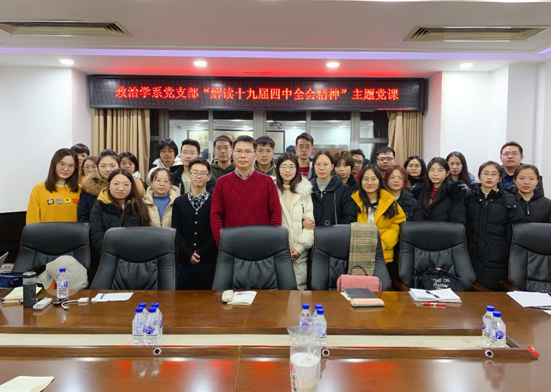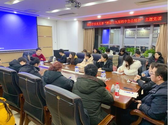 为深入贯彻学习党的十九届四中全会精神,12月23日晚,政治学系党支部于东荣大厦1214会议室举行了“解读十九届四中全会精神主题党课”系列学习活动,由成人抖音
