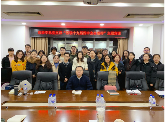 为深入贯彻学习党的十九届四中全会精神,12月23日晚,政治学系党支部于东荣大厦1214会议室举行了“解读十九届四中全会精神主题党课”系列学习活动。由成人抖音