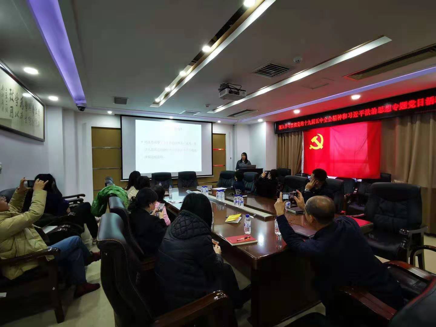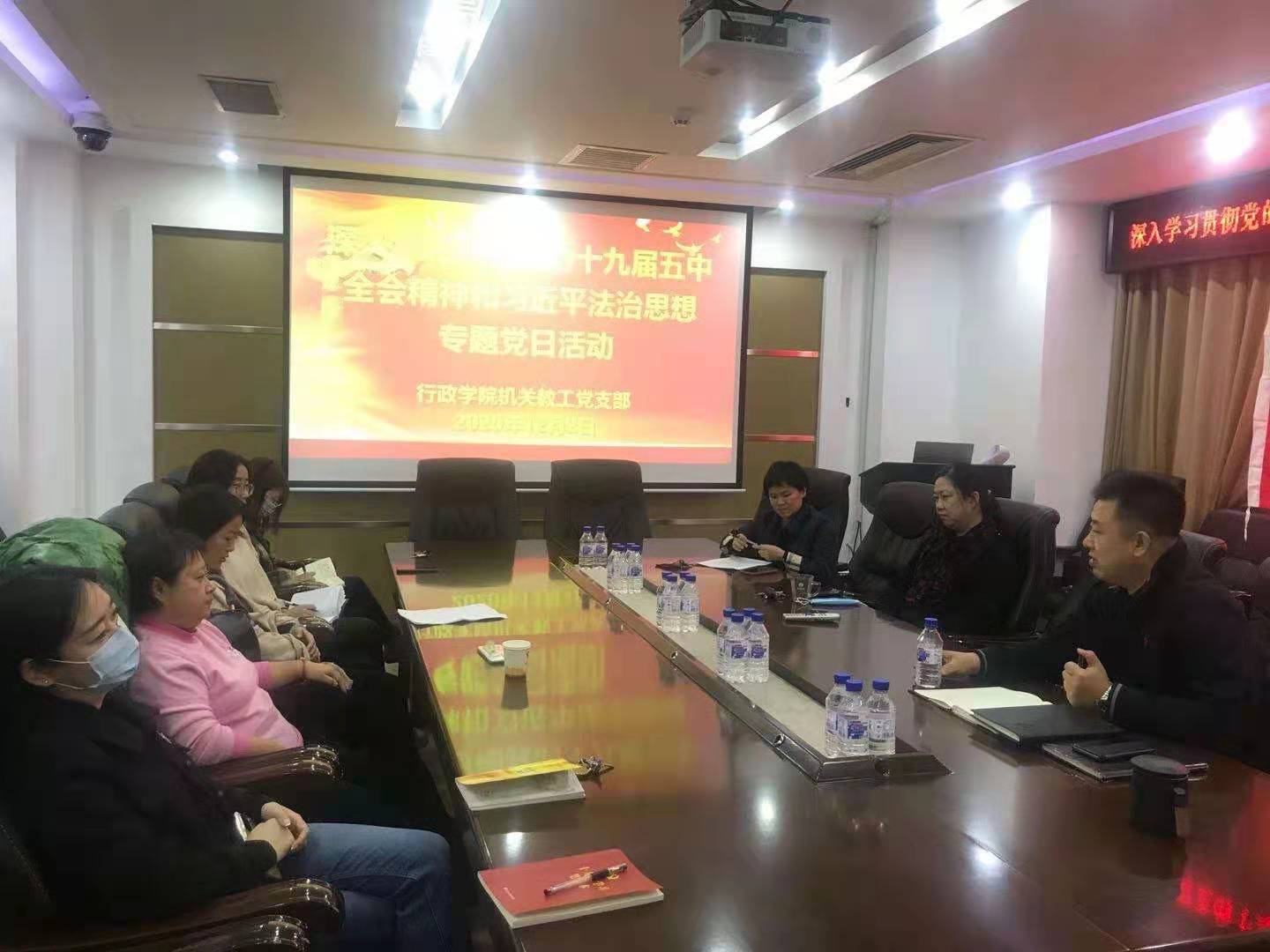 党委的相关工作部署,机关教工党支部于2020年12月2日,召开党员大会,开展“深入学习贯彻党的十九届五中全会精神和习近平法治思想”专题党日活动。会议由支部书记密佳音主持,全体支部党员参加会议。