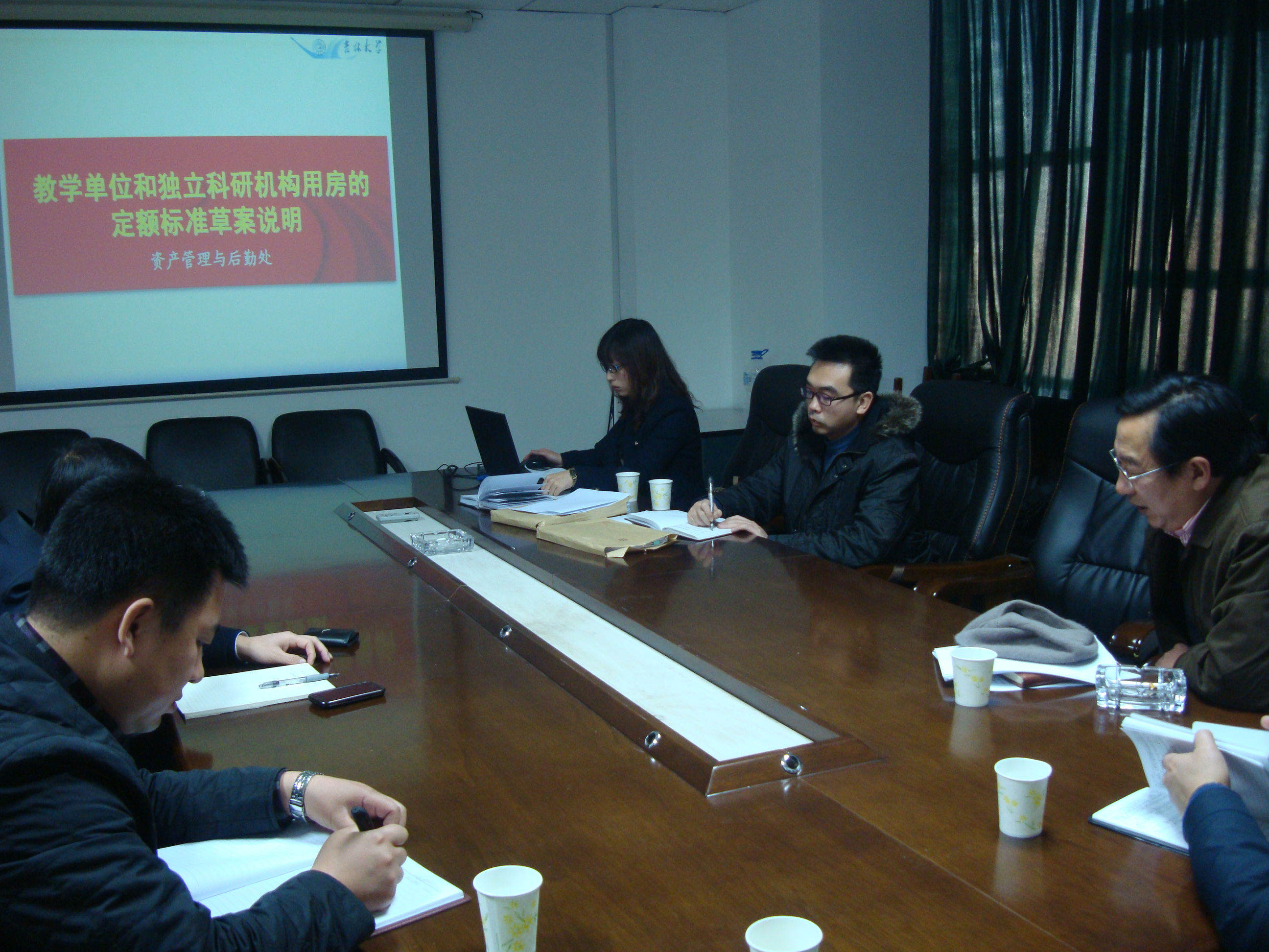 11月12日上午,资产管理与后勤处李宏伟常务副处长等一行四人,来到成人抖音 进行“教学单位和独立科研机构用房定额标准核定”的调研。成人抖音 张贤明院长、边铁书记、范斌副院长参会。