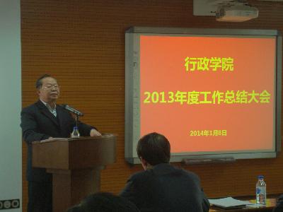 2013年度的学术和行政工作。他从人才队伍结构逐渐优化、整体水平呈现上升趋势;科学研究质量稳步提升、学术影响不断扩大;人才培养模式改革不断深化,成效显著;MPA教育不断规范,社会效益和经济效益均明显提升;学科平台建设扎实推进,成绩斐然;学术交流持续活跃,学术氛围日益浓厚;公务员培训工作努力进取,保持了良好势头;管理制度化建设不断加强、制度执行力不断提高;院庆工作充分展示成人抖音