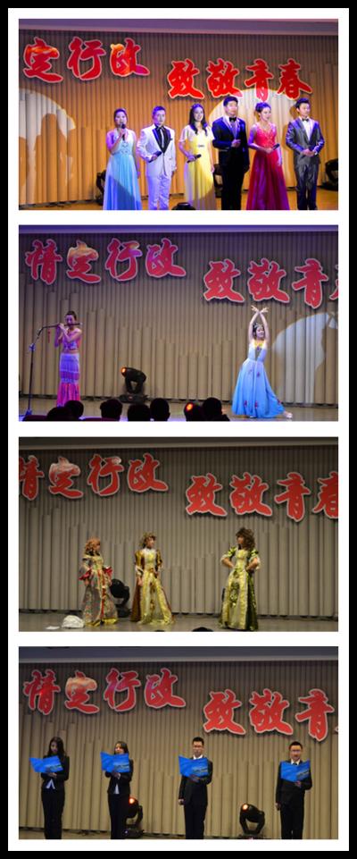 迎新晚会上,2014级本科、硕士新生们为大家带来了丰富多彩的节目。申竹韵等带来的乐器合奏及演唱《菊花台》、《someone like you》唯美动听,亦真亦幻地演绎出穿越时空的爱恋;小品《超幸福鞋垫》采用电视广告双人对话促销的形式,模仿惟妙惟肖,令人大笑不止,瞬间点燃全场;情歌串烧悦耳动听、激情四射,一时间将现场气氛推向了一个小高潮;李康正、崔竹雅、孟春希等带来的舞蹈《uh--ee》清新可爱,仿佛在讲一段有趣的童话故事,赢得了热烈的欢呼与掌声;而备受关注与期待的小话剧《灰菇凉》采用反串形式,取得了很好的效果,令人捧腹大笑;由李汉、鞠健等带来的《精武风云》武术串烧刚猛有力、雄浑大气,观众叫好不断;由代金冶、王迪表演的相声《文武双全》将说学逗唱精彩演绎,抖包袱、学倒口,尤其是代金冶贯口表演引发全场阵阵掌声;诗朗诵《青春之歌》赞颂了青春的美好,激励大家在最美年华书写最美人生;萨克斯独奏《暗香》旷远悠扬、感人心扉;意大利语的《美声仙音》高亢激昂,令人叹服。形式多样、丰富多彩的节目,展现出成人抖音