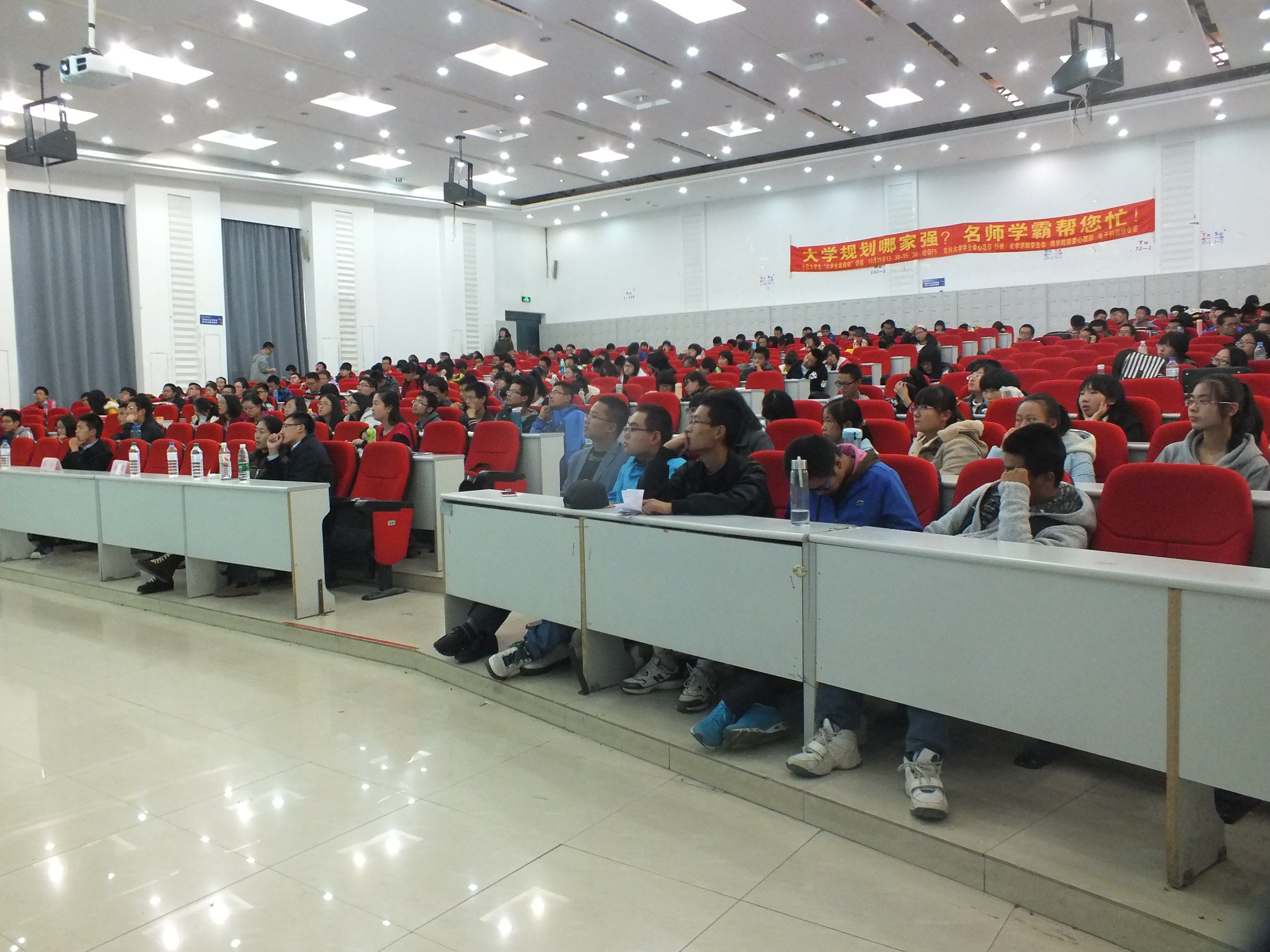 学生会心理健康部协办的以〝大学生涯规划〞为主题的讲座在经信教学楼F5阶梯教室成功举办。学生心理健康指导中心主任何思彤和几位十佳大学生来到现场,给大家提供心理健康方面的指导和大学学业生活的规划。