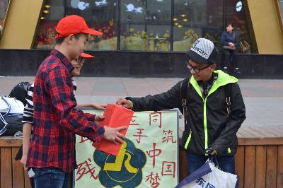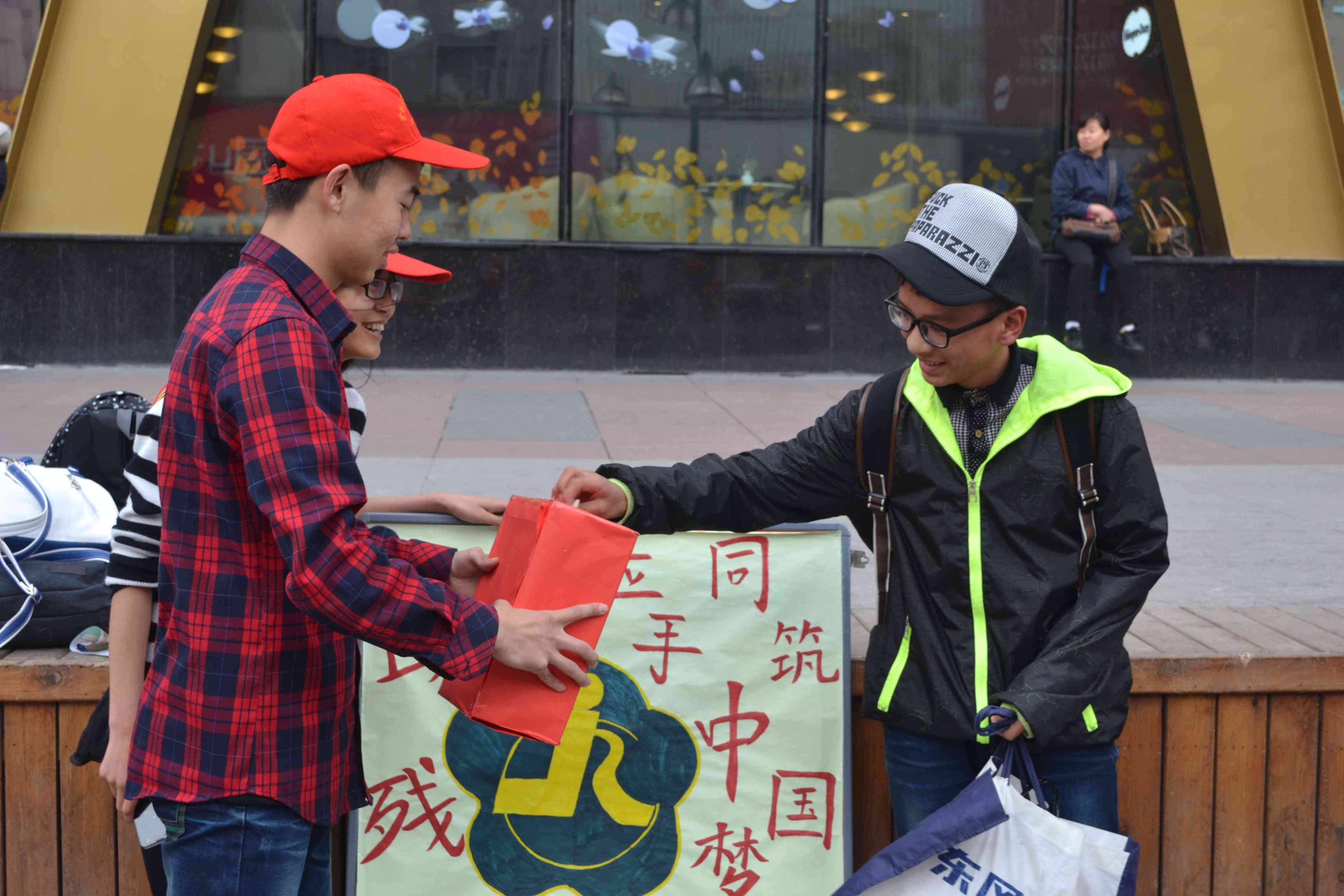 081301班团支部共有12人来到了重庆路,他们手捧募捐箱,向过往的路人发放宣传单并募集善款。同学们将每一个进行捐赠的爱心人士的名字记录在册,并给他们分发了由特殊儿童自己制作的爱心千纸鹤,虽然仍有很多人并没有将自己的名字留下,但是他们的行为给这些青年人的心里带来极大的温暖与鼓励。当过往的市民们了解到这是为特殊儿童们募捐时,都大加赞赏,纷纷上前捐赠,虽然大家捐赠的钱数不等,但是大家的爱心是相同和宝贵的,长春街头因为这些人而变成了爱的海洋。“我认识的朋友当中就有残疾人,他们真的很坚强与乐观,有很多地方值得我们去学习,我们需要向他们伸出援助之手并鼓励他们,这样的活动很好,希望以后可以多些。”进行捐赠的张女士评价这个活动说。