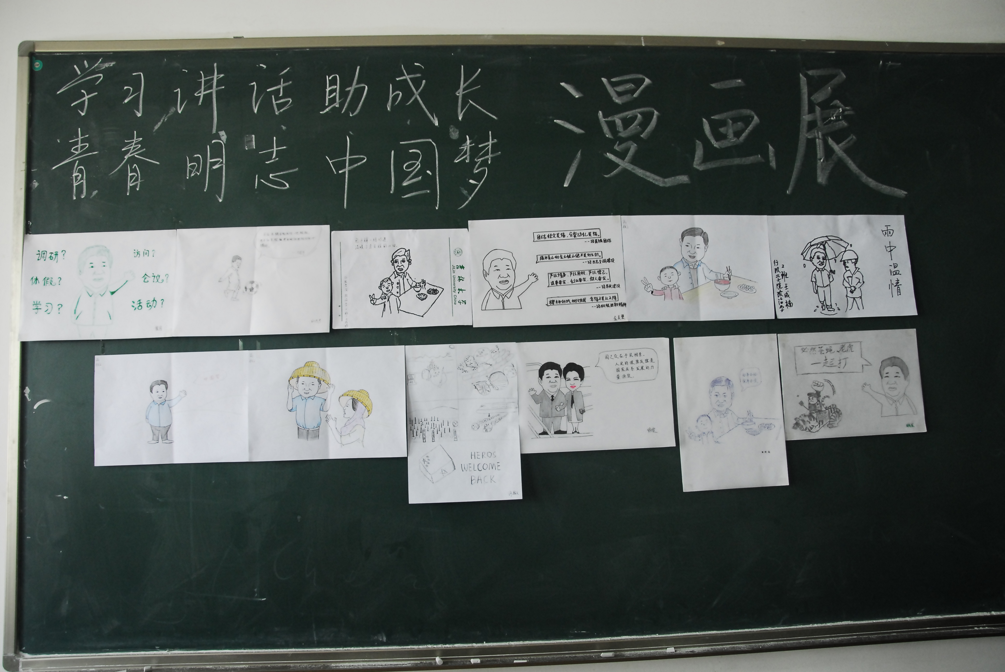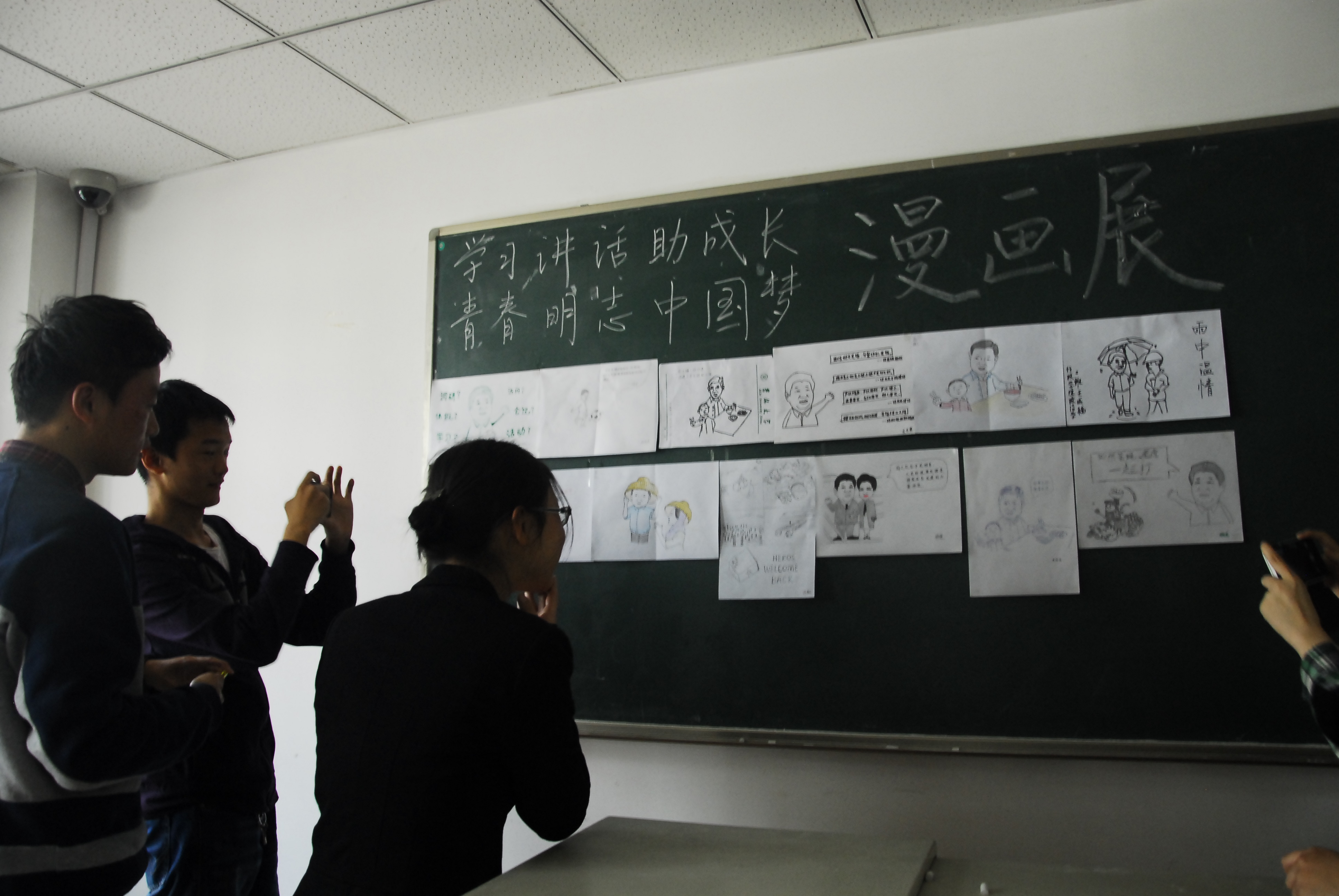 团委的指导下,081302班团支部于4月25日中午在逸夫教学楼421教室举办了主题为“学习讲话助成长,青春明志中国梦”的主题团日漫画展活动。