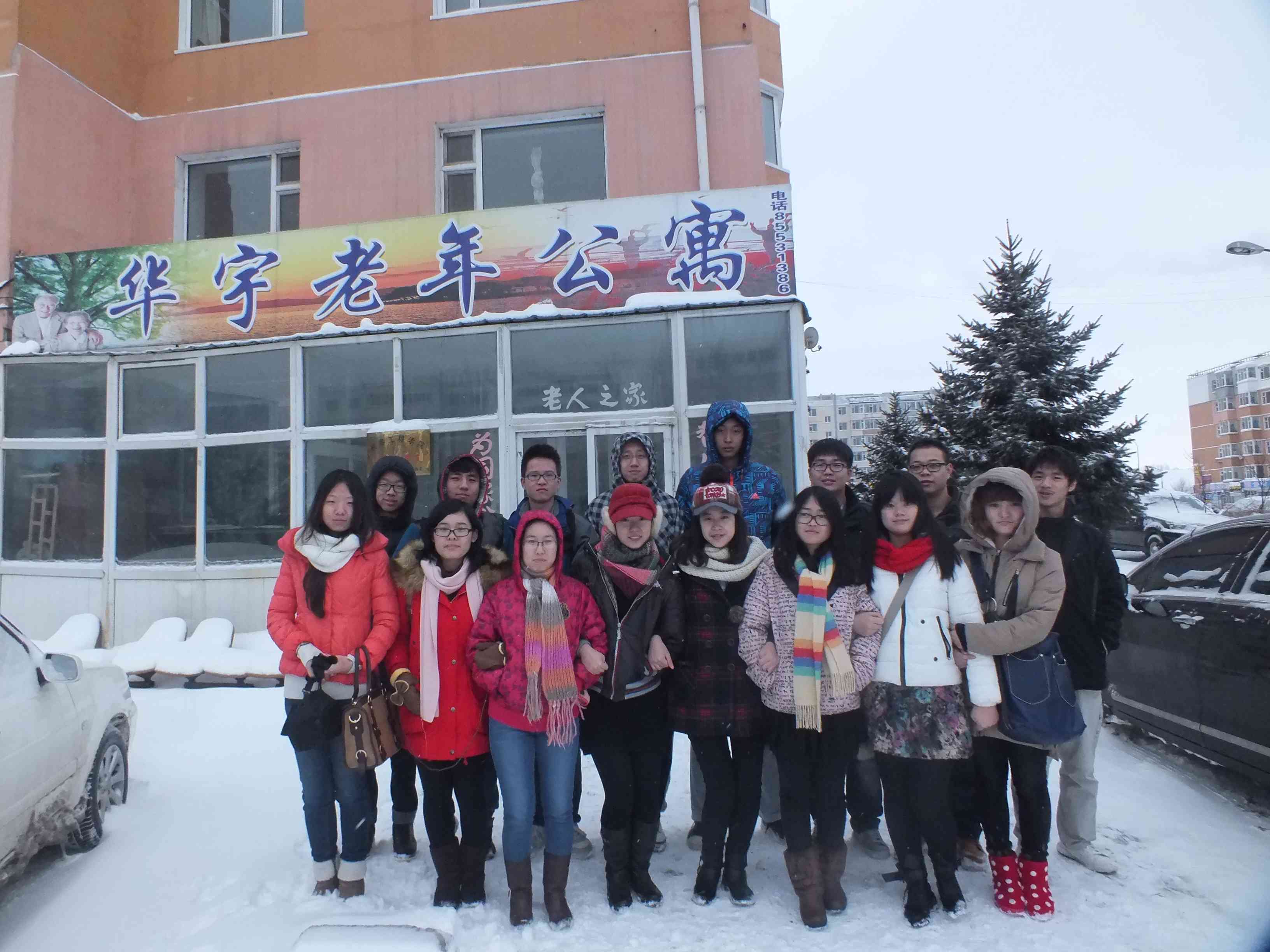 团委的指导下,081204班部分学生于11月19日14时许来到了长春市华宇花园老年公寓,开展了“老年公寓—爱心之行”的主题团日活动。
