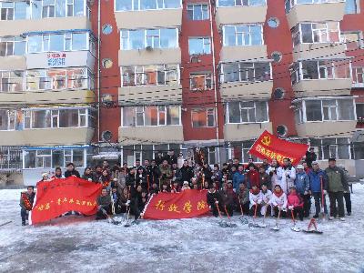 志愿者不畏困难,不惧低温,按照工作人员的安排有条不紊地展开了清雪工作。女同学面对劳动任务丝毫不逊于男生,一铲铲,一锹锹,展现了行政学子朝气蓬勃,踏实耐劳的精神品质。经过志愿者们,近两个小时的辛勤劳动,社区内各主干道路的积雪基本清理完毕。东站十委社区党委书记对志愿者的表现给予了高度的肯定与赞扬,并对志愿者的志愿服务表示衷心的感谢。