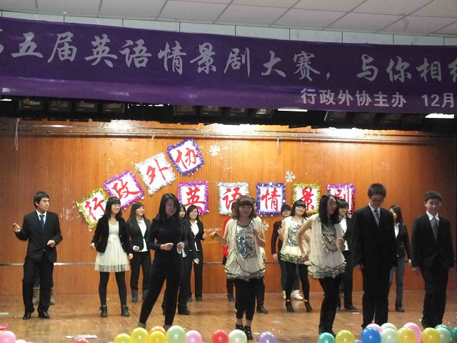 2012级的四支参赛队伍为观众带来了一场精美绝伦的视听盛宴。在精彩的开场白后,行政管理专业三班率先登场,身着T恤衫和牛仔裤的他们,向观众展示了青春的激情与活力。悠扬的歌声,迷人的舞蹈,正是他们“歌舞青春”主题的真实写照。随后,政治学专业二班同学将观众带进了古老的西方宫殿,英勇的骑士、美丽的公主、善良的王后、邪恶的女巫,《紫玫瑰》的经典童话被他们演绎得淋漓尽致,赢得场下观众的阵阵掌声。在同学们的期待中,政治学专业一班呈现的《睡美人》拉开帷幕,在继承原著经典剧情的基础上,同学们充分发挥自己的想象力,形象展现王子与睡美人爱情的同时,又突出的塑造了一个想要取宠于国王的小王妃形象,成为全剧的一大亮点,赢得了现场观众的一致好评。最后,行政管理专业四班的情景剧《真爱至上》闪亮登场,浪漫温馨的婚礼场面,动感十足的机械舞,悦耳动听的英文歌曲,让现场观众久久陶醉于其中。期间,在同学们的热情邀请下,评委嘉宾们也纷纷献上歌曲将比赛推向高潮。