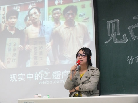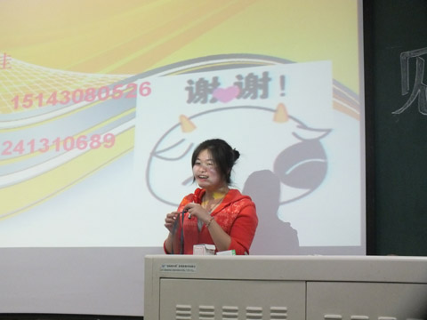 “先锋论坛”最佳辩手的贾茹同学和大家分享了她参加辩论赛和交流访学的经历,使同学们更全面的了解了幸福的真正内涵。