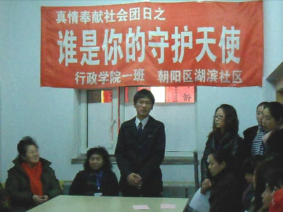 团委副书记马远俊及2010级政治学一班学生代表于3月10日上午来到朝阳区湖滨社区,展开了以“谁是你的守护天使”为主题的团日志愿服务活动,此次活动受到了《长春晚报》的关注和报道。