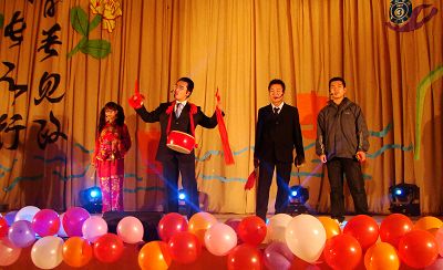 随后,演出正式开始。本次的节目可谓是纷繁多样、异彩纷呈。幽默诙谐的三句半,优美动听的歌曲,各式各样的乐器表演等使全场呼声不断。兴起时,政治学系博士生导师,来自蒙古族的宝成关老师更是走上舞台,为观众带来了一首颇具民族特色的歌曲,全场气氛一度达到高潮。随后,话剧节目《大学生活》和《三国无双》中,表演者们更是凭借彼此之间默契的配合、搞怪的演绎方式以及夸张的语言不时引来全场观众的阵阵欢笑。最后,两个半小时的演出在全体08级学生会成员合唱的一首《爱的翅膀》中落下了帷幕。
