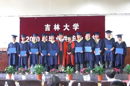 毕业典礼在雄壮的国歌声中拉开了序幕,大会首先由副院长刘雪莲教授宣读2010届毕业生名单。随后,王家福教授和王彩波教授为所有毕业生授予学位,并和毕业生同学们合影留念。授予学位仪式结束后,2010届刘笑阳同学代表毕业生发言,发言内容既饱含回忆又充满感激,引起同学们的强烈共鸣。接着,颜德如教授代表全院教师发表热情洋溢的演讲。最后,边铁书记代表成人抖音