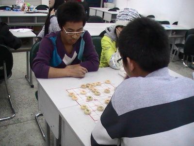 大赛在晚6时准时开始,布置得焕然一新的会场中充满了欢愉的气氛。比赛分五子棋、象棋、斗地主三个比赛项目,共有八支队伍参赛,每队五人,比赛采取淘汰制。各队同学们认真准备,积极备战,在比赛项目中努力拼博,紧密配合。经过一番激烈角逐之后,以韩威同学为队长的飞羽队夺得了团体一等奖;刘玉鑫夺得象棋冠军,荣获“象棋之王”称号;邹子炎和郭士煜夺得五子棋冠亚军,分获“五子之星”与“五子小星星”称号;李康隆和历楠夺得斗地主冠亚军,分获“大地主”和“富农”称号。