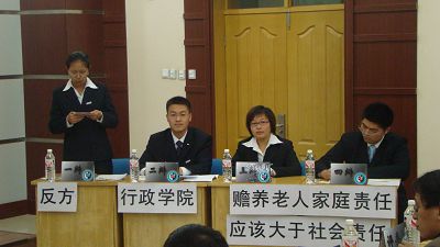 2008年10月26日18:00,“先锋论坛”于理化楼第三教室举行。本次辩论赛围绕“赡养老人社会责任与家庭责任哪个更重要的问题展开。作为反方,成人抖音