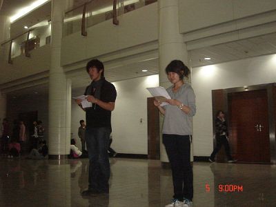 全体演职人员在东荣一楼进行第一次正式彩排。辅导员马景惠老师及学生会06级全体成员莅临观看了彩排并对相关节目进行指导。