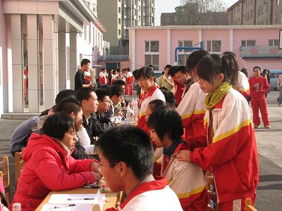 东门出发,到达长春二中总部和高三分部两组开始义务校园行。