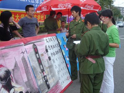 团委下属的外协、思潮、海化和非常文学社精心组织、认真准备,克服了纳新地点远,准备时间短等困难,在大学城开展了新年度的社团纳新活动。