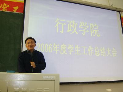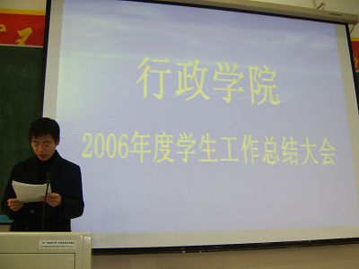 2006年的学生工作做了详细总结。之后,党支部、团委、学生会、“行政之光”等学生团体以及各年级学生代表也分别做了总结发言,向大家汇报一年来取得的成绩,反思不足之处,并提出了新一年工作的计划和设想。在各部门总结汇报之后,佘书记为这一年来在学生工作各方面取得优异成绩的组织和个人颁发了荣誉证书。会议最后,佘书记在听取大家总结的基础上与同学们进行了深入的交流,表达了自己的感动与感慨,并重点谈了学生干部需要具备的几项技能,使同学们受益匪浅。