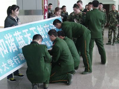 学子镀染军队刚毅严肃之风采;为绿色军营镀染高校学术活力之风采。