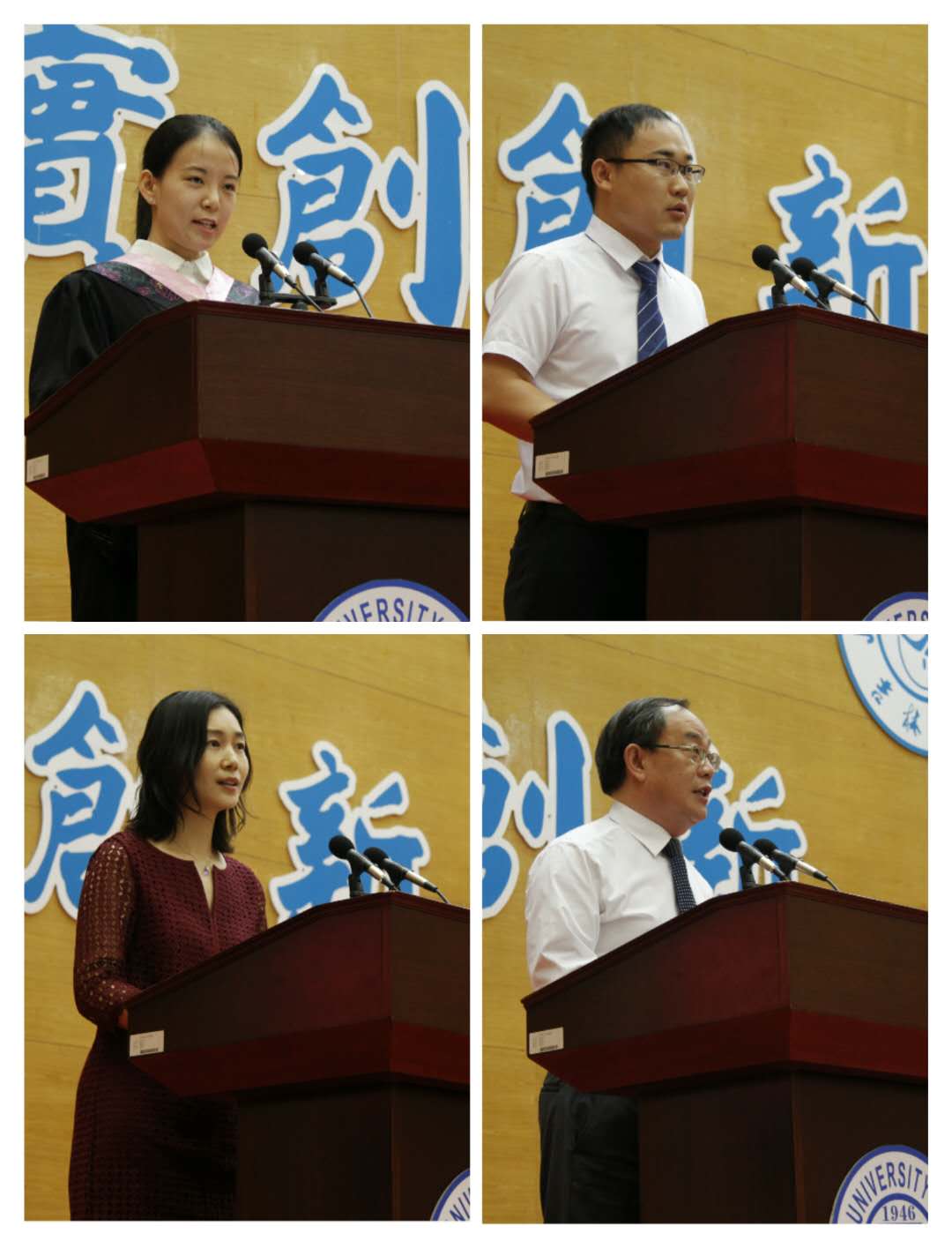 教师代表宫俐笠副教授在发言中首先祝贺毕业生完成学业,顺利毕业。随后,她叮嘱同学们无论将来在哪里,在做什么,始终不要忘记在大学里不懈奋斗的自己,并勉励同学们要始终保持对知识的好奇心。同时,她希望同学们始终保持对生活的热爱,以独立的姿态面对世界、坚持梦想。她说道:“人生很长,只要心中有光就一定能到达想去的地方,愿行政之光庇护你我!”