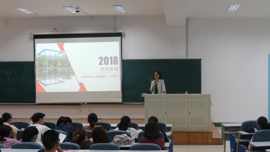 在学风教育讲座中,史慕华从提高学习能力、交际能力两方面向本科生同学们提出建议,鼓励同学们多方面发展,努力提高自己。在学习方面,她建议同学们转化学习思维,培养属于自己的学习习惯;在日常交际方面,她叮嘱同学们经常换位思考,尊重自己,尊重他人,共同成长。