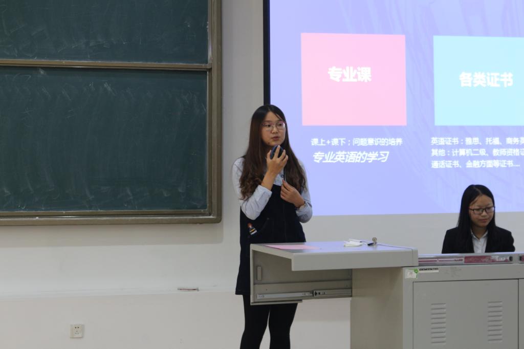 同风雨、共荣辱;郁心遥强调,计划并实现,能让人获得一种满足感,而学习,需要找到适合自己的方法,劳逸结合,条理、高效;刘梦远指出学习的意义,建议同学们上好专业课,多读专业书,并为大家推荐了相关资料及公众号。在随后的问答环节中,18级新生朱鸿询问师哥师姐们认为自己发生的深刻转变是什么,而周金霖回答了“大概就是从年轻气盛到认识到我们每个人都很平凡,而又都在平凡中寻找美”。