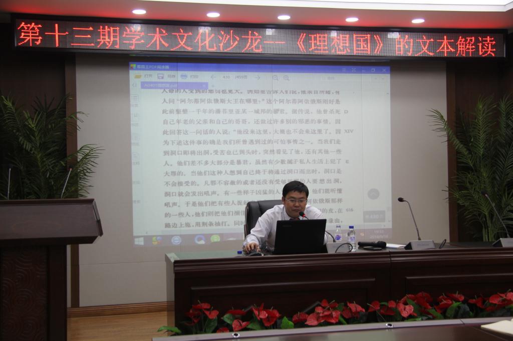 中心校区东荣大厦B303会议室举办了第十三期学术文化沙龙。本期沙龙以“《理想国》的文本解读”为主题,邀请到了成人抖音