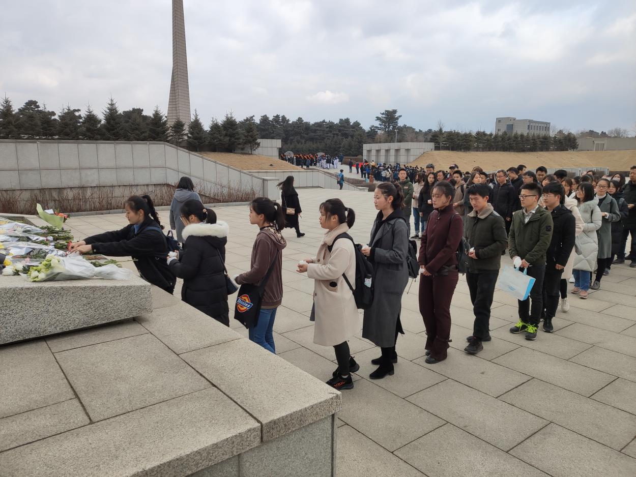 前卫南区北门出发,经过近两个小时的车程抵达目的地。活动伊始,全体志愿者在烈士纪念碑前默哀,并献上亲手制作的纸花。随后,志愿者们共同参观了烈士纪念馆。