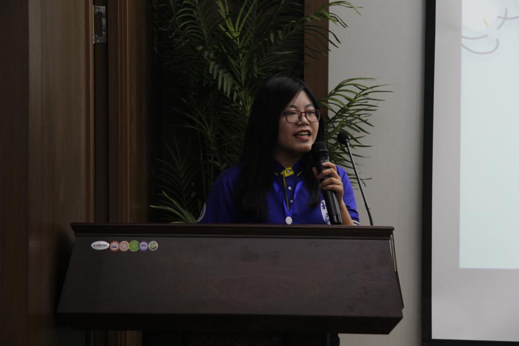仪式伊始,常有余宣读了优秀营员名单,许玉镇为优秀营员同学颁发了证书。优秀营员代表成天立、肖晨卉与吴荧秋同学依次登台展示了研修报告。