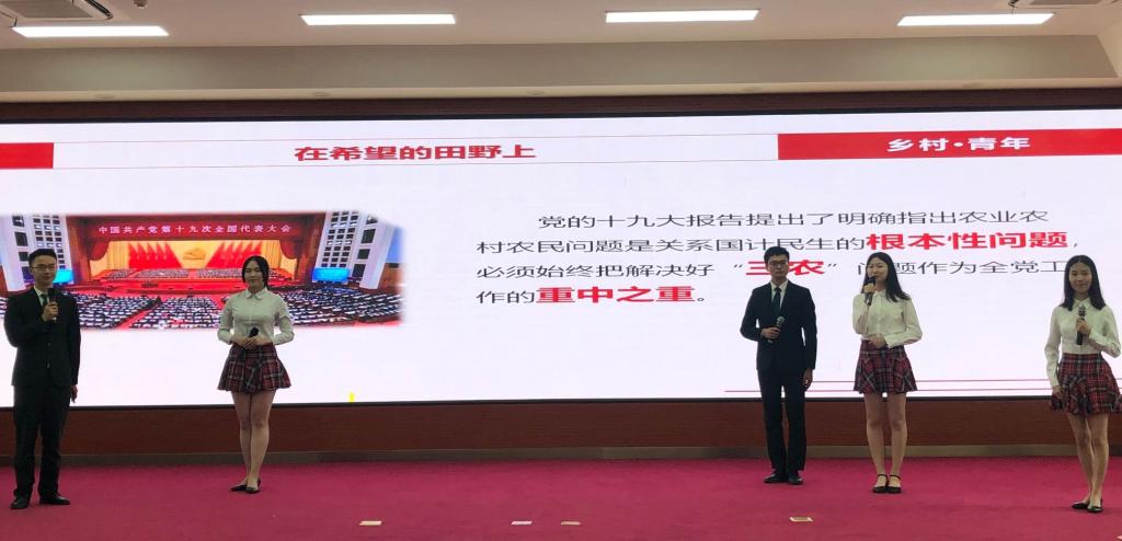 本科生孟从华、王世亨、陈晗蕾、郭光婷、金燕、王银清、冉珂欣七名同学组成。团队师生利用课余时间查找相关资料、挑选授课题目。经过认真讨论,最终将题目确定为《在希望的田野上——乡村振兴与青年担当》。